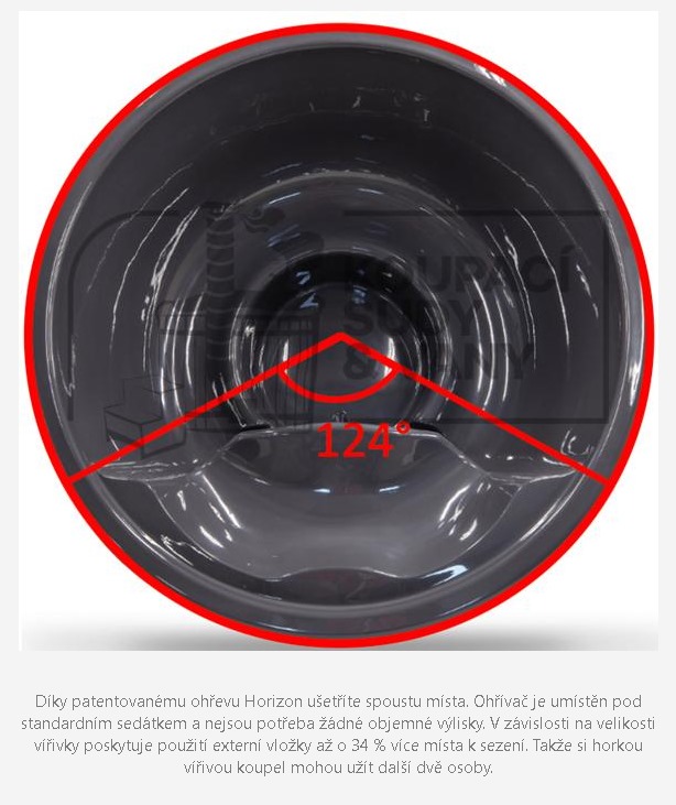 hydromasáž 8 trysek, vzduchová masáž 12 trysek, LED osvětlení